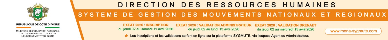 EXEAT 2026 : Les inscriptions des agents prennent fin le samedi 11 avril 2026 à 23h59.